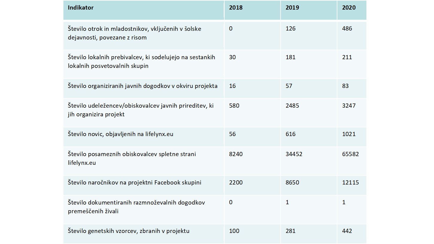 V poročilu za leto 2020 lahko med drugim preverite, kako smo povečali število otrok in mladostnikov, vključenih v projekt in število članov Lokalnih posvetovalnih skupin. Od začetka projekta sta se močno povečala tudi število posameznih obiskovalcev spletne strani lifelynx.eu, in sicer z 8240 na 65582, ter število naročnikov na projektni Facebook skupini (LIFE Lynx in LIFE Lynx – hrvatski terenski blog), z 2200 na 12115.