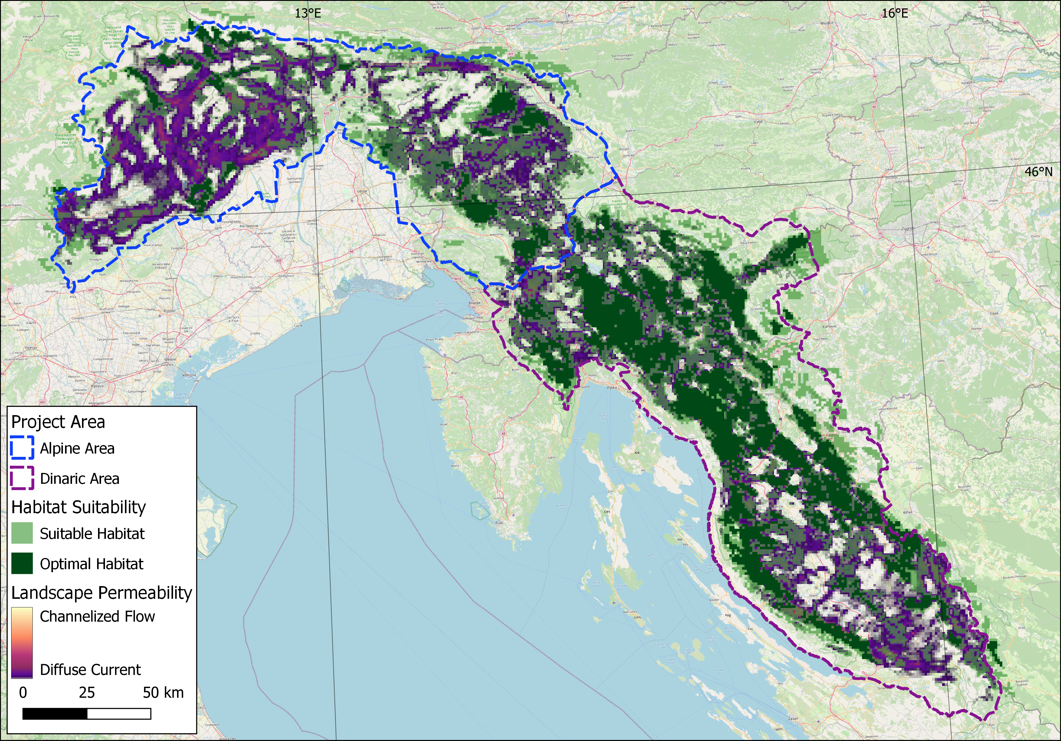 I ricercatori della Facoltà di Biotecnica, Dipartimento di Biologia, hanno preparato due mappe di idoneità degli habitat ottenute con diversi approcci metodologici, una mappa delle macchie di habitat ottimali e mappe di permeabilità del paesaggio e connettività degli habitat. Di seguito sono allegate mappe con brevi descrizioni, mentre i file PNG e GIS sono disponibili sulla pagina Life Lynx.