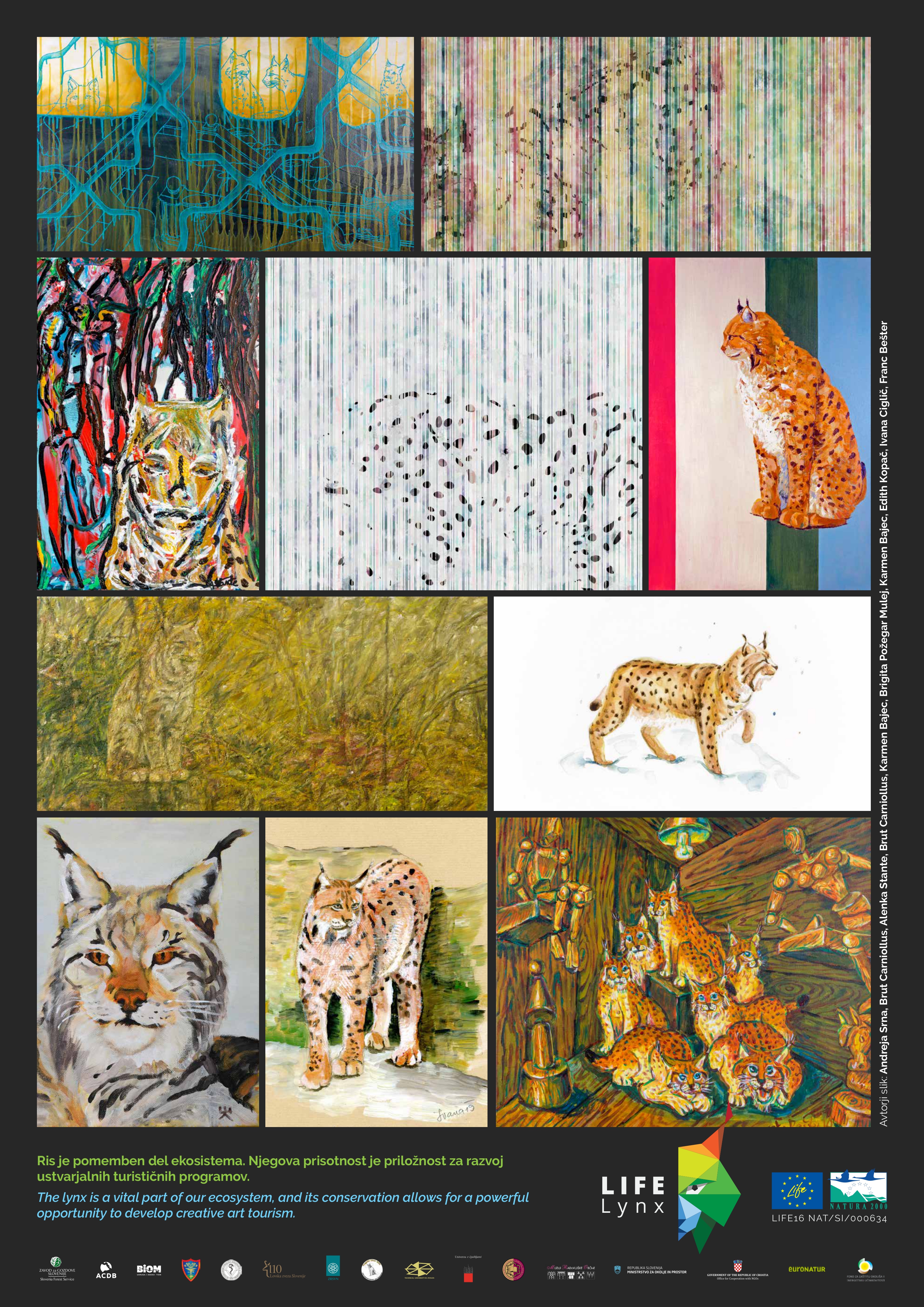V preteklih letih smo v okviru projekta stkali uspešno sodelovanje z umetniki in skupaj organizirali likovne dogodke namenjene ustvarjanju na temo risa. Ustvarjena umetniška dela širijo zgodbo o risu, razlogih za ogroženost populacije in ukrepih s katerimi želimo risa rešiti pred ponovnim izumrtjem. Razgibana kulturna krajina Slovenije, pestrost živalskega in rastlinskega sveta pa so tudi odlična izhodišča za razvoj umetniškega turizma. V sklopu projekta smo zato oblikovali plakate, ki s svojimi sporočili promovirajo pomen ohranitve risa in priložnosti, ki jih njegova prisotnost ponuja za razvoj ustvarjalnih turističnih programov.