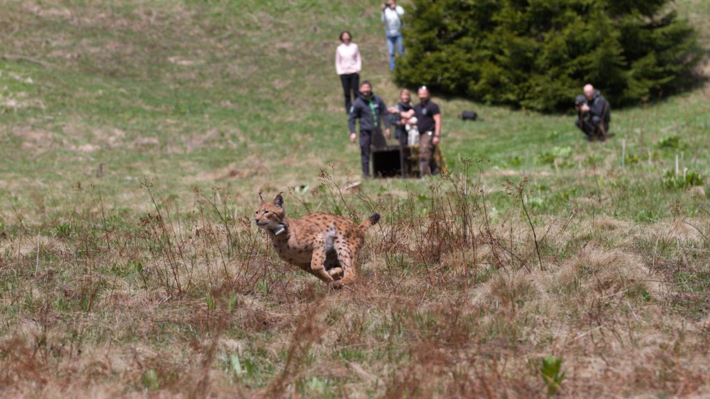 Tris - najväčší zdokumentovaný rys v Slovinsku, Julija a Lenka teraz skúmajú svoj nový domov. Naše kamery zachytili ich vypustenie