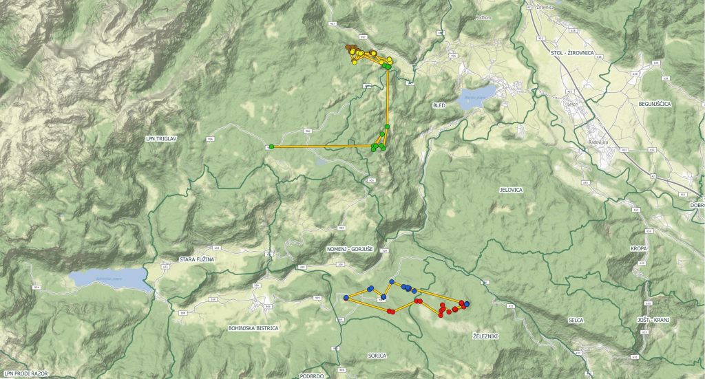 Aktuálne sme dostali prvé údaje z telemetrických obojkov Tris, Julija, Lenka, Zois a Aida, piatich rysov vypustených v Gorenjskej oblasti